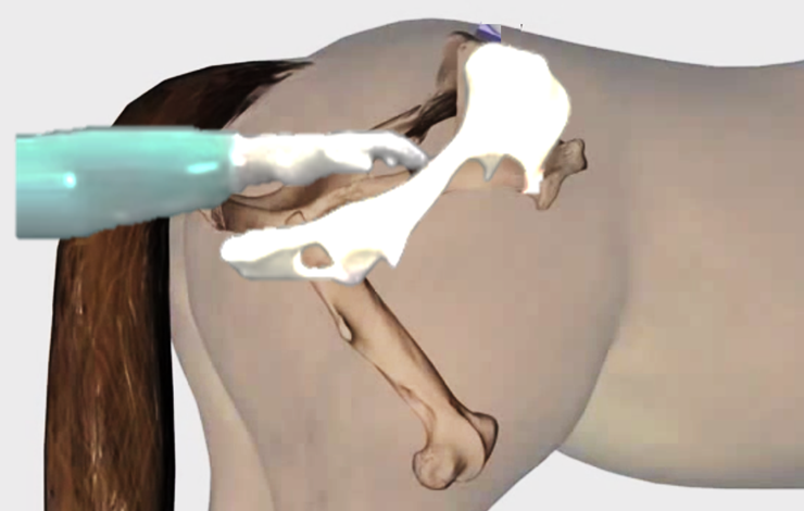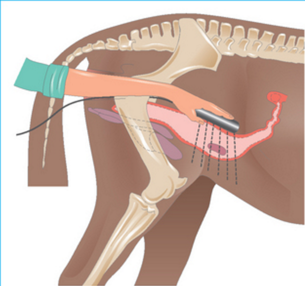 El ultrasonido implica el uso de pulsos de sonido enviados a través de los tejidos por cristales en la superficie de la sonda. Estos pulsos se reflejan desde los tejidos a diferentes velocidades y una imagen se forma por análisis computarizado, que descifra y visualiza este patrón de reflexión. En este caso, se sostiene una sonda lineal alargada en la mano y se lleva cuidadosamente al recto y se orienta sobre el tracto reproductivo, que se encuentra debajo (ventral) del recto.