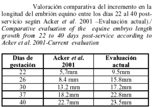 El espesor de la pared uterina aumenta en la yegua preñada al triple de lo normal, luego del día 16 al 21, mientras que en yeguas vacías declina hasta el inicio del siguiente celo.